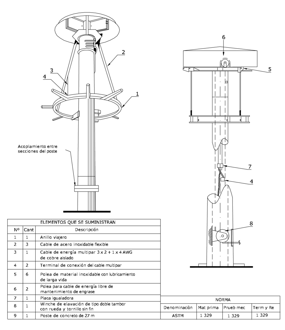 AP804 Poste de concreto de 27m para alumbrado publico con anillo movil