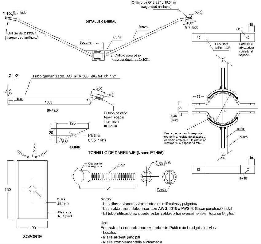 | Tipo 2 | 140mm | NTC 422/858/844/2076 - ASTM A36/A153/A500 |