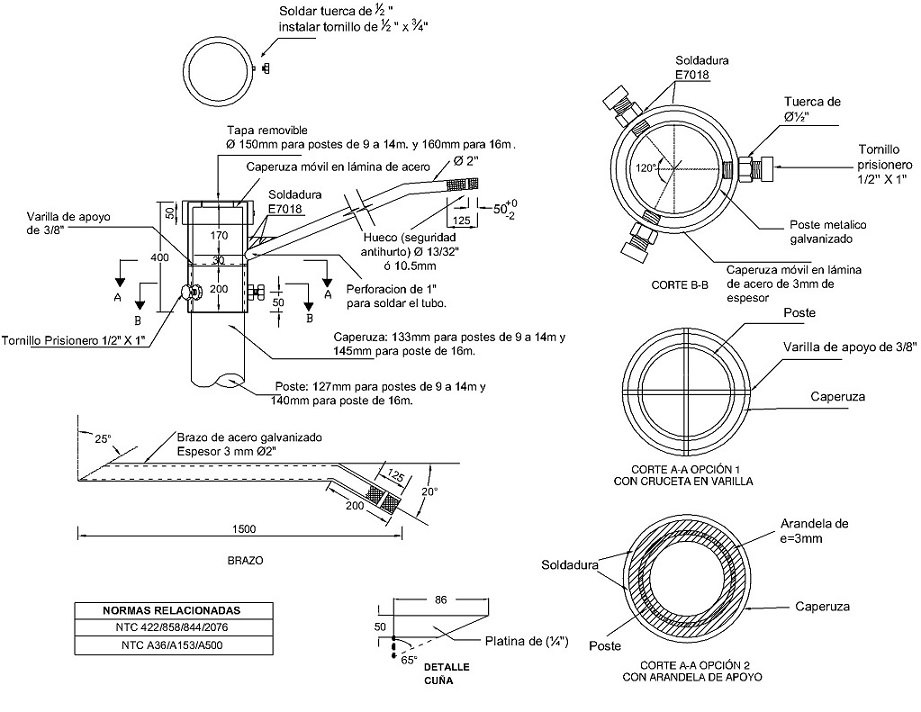 AP808-1 Soporte Sencillo Ø2" Para Poste Metálico Galvanizado