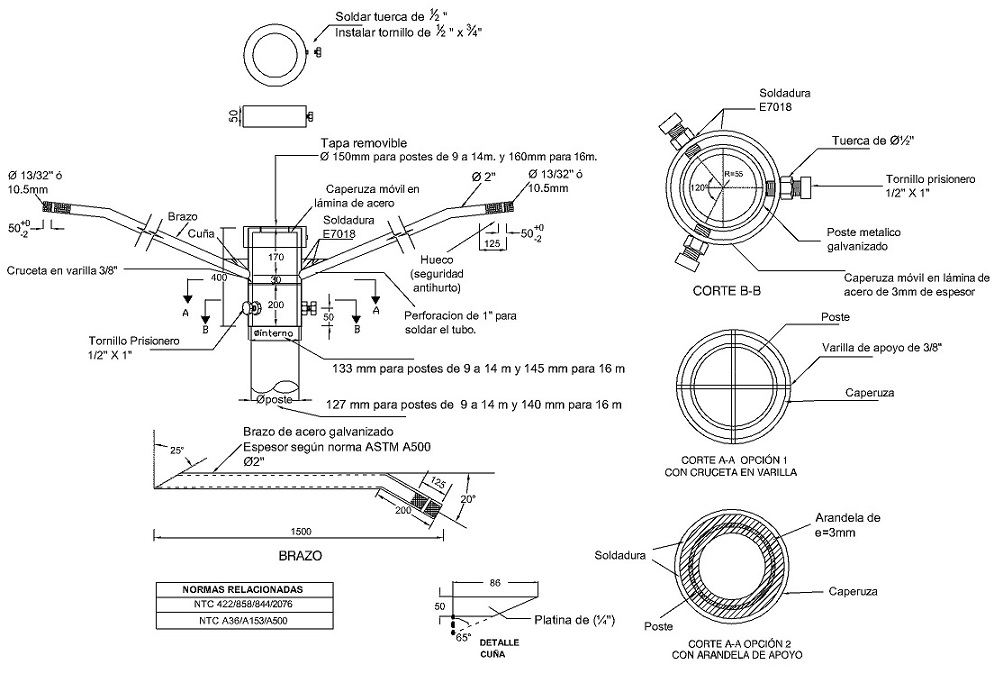 AP809-1 Soporte Doble Ø2" Para Poste Metálico Galvanizado