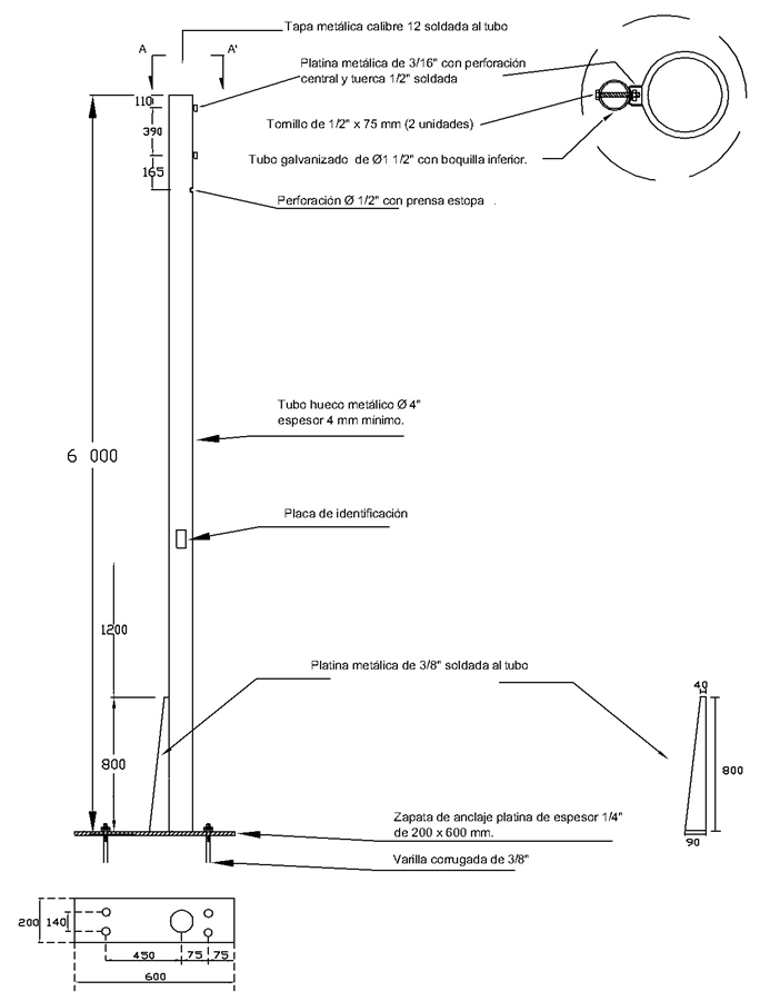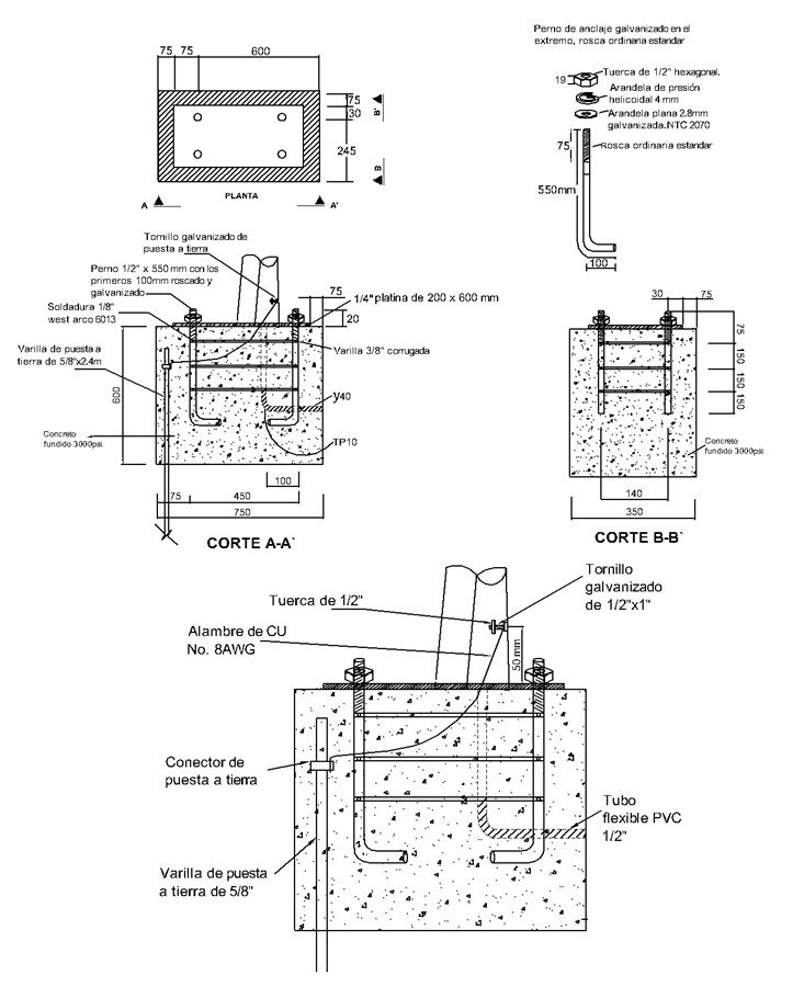 DETALLE DE LA BASE Y DE LA PUESTA A TIERRA