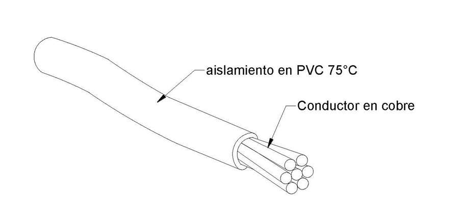 El cable de cobre No.12 y 14 AWG aislado THW 75°C se utiliza en las acometidas aéreas o subterráneas de las luminarias de alumbrado público.