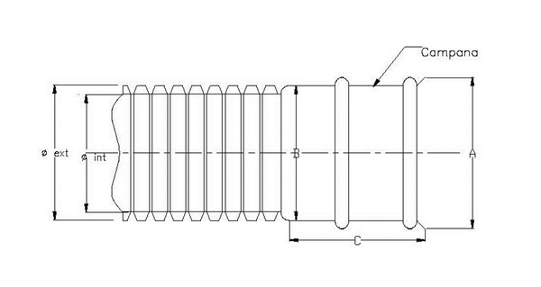 | Diámetro nominal | Diámetro de entrada A, en mm | Diámetro del fondo B, en mm | Longitud de la campana C, en mm | |||||||