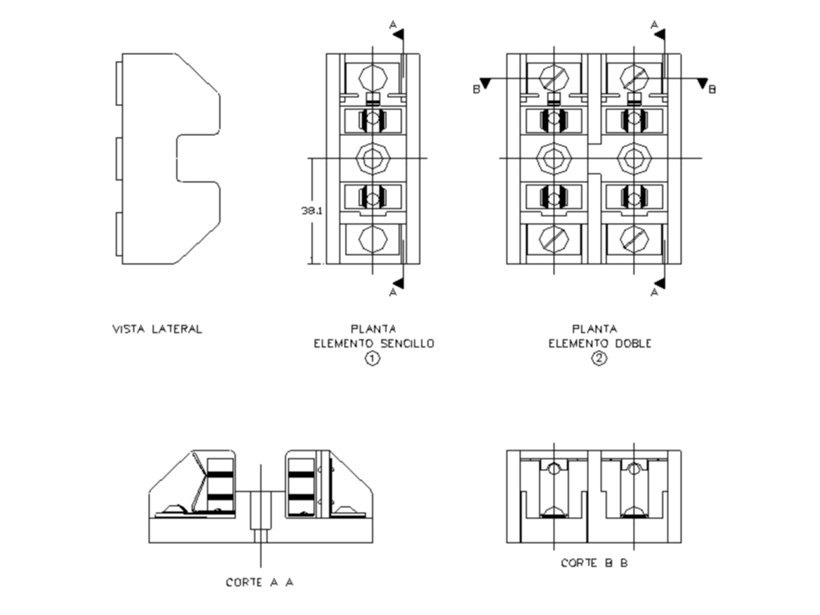 1. Portafusible para ser utilizado con fusible de acción rápida de 10 A – 600 V, capacidad de interrupción 10kA, ver norma AP 857 .