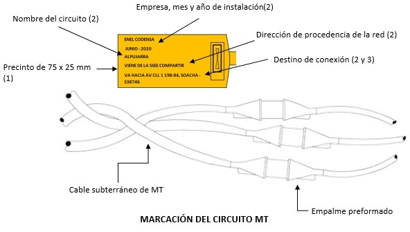 3. Cuando la dirección de procedencia y destino del circuito o localización física del empalme y terminal no puedan establecerse con exactitud, se debe informar en la marquilla o placa de la manera más clara y resumida para que sea fácil su ubicación.