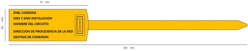 2. La marquilla deberá ir en la parte posterior con el nombre de Enel Colombia S.A, seguido del mes y el año de instalación, código y nombre del circuito, dirección de procedencia y destino del circuito.