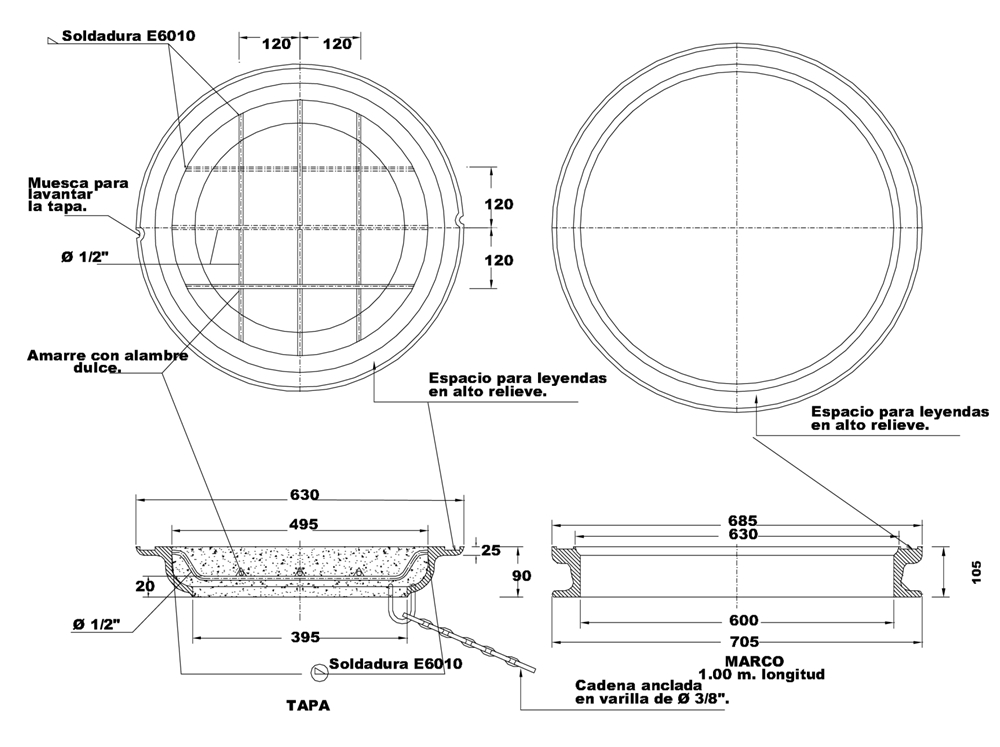 - Las varillas de Ø 1/2´´ van soldadas entre sí y a la tapa.