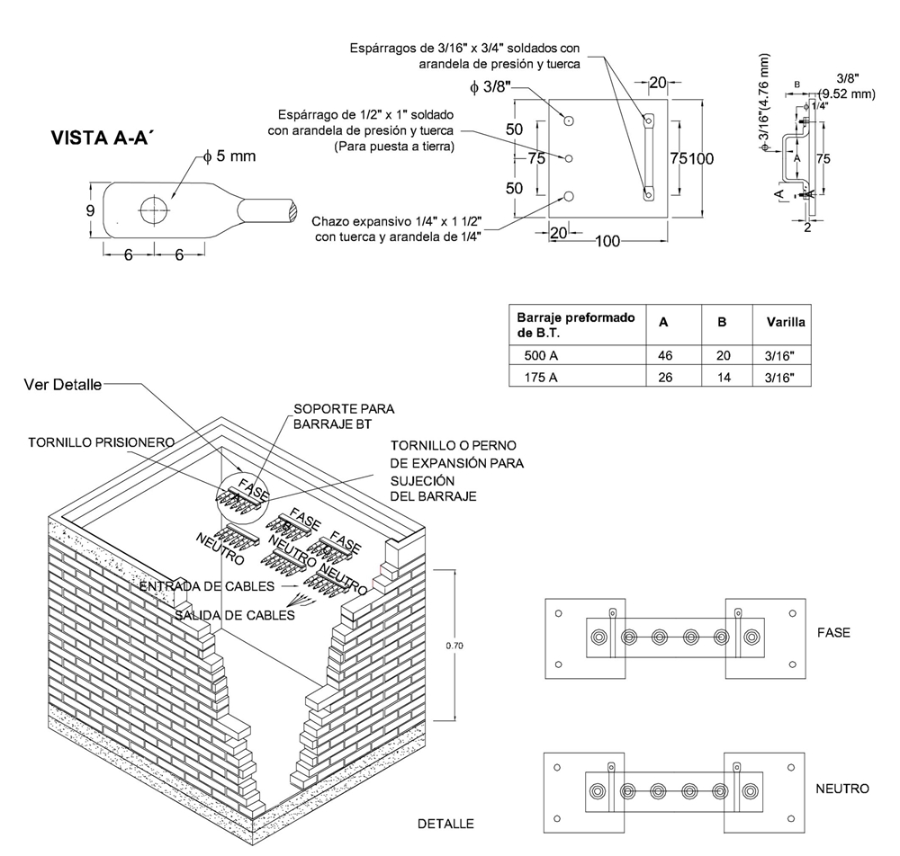 - EN UNA CAJA DE INSPECCIÓN SOLAMENTE SE PUEDE INSTALAR UN (1) JUEGO DE BARRAJES