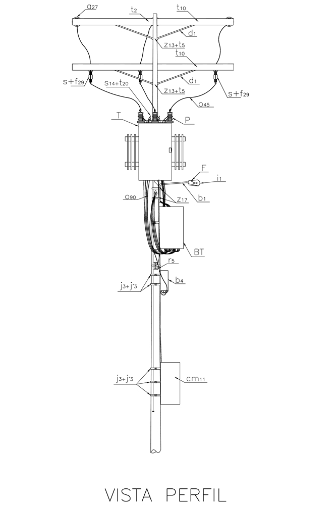 - Uso de transformador acodado ver norma CTU502-3 Montaje en poste transformador aislado en MT Circuito en bandera.