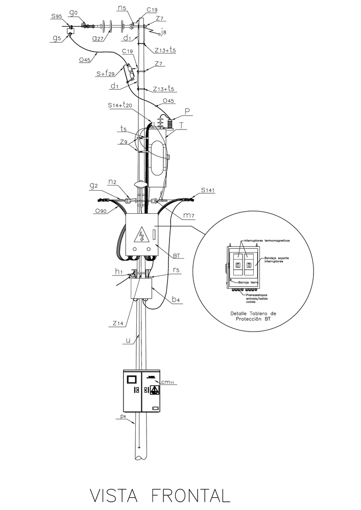 | BT | 1 | ET531 | Tablero de protección de baja tensión para montaje en poste (1) | |