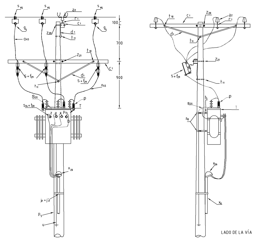 - Los cortacircuitos se instalarán del lado contrario al transformador. Si hay elementos cercanos que afecten su instalación o dificultad en la apertura de los portafusibles, se ubicarán encima del transformador.