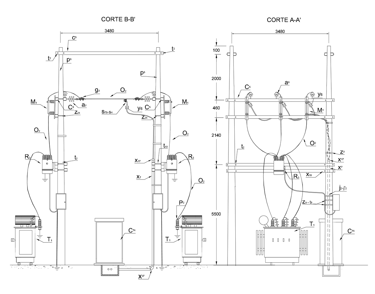 | T 1 | 2 | Transformador de potencia de 0,5 a 5 MVA de 34,5 - 11,4 kV , 34,5 - 13,2 kV ó 34,5 kV- 480 V | ||