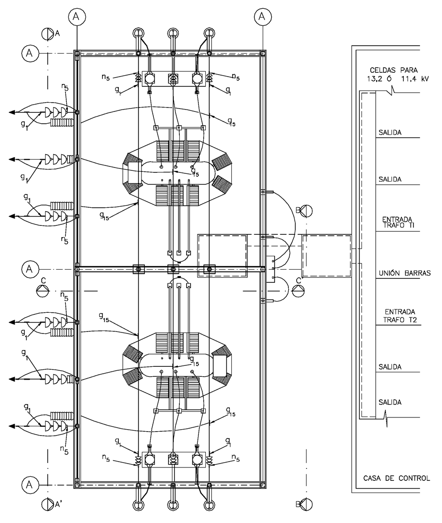 CTR615 Centro de transformación rural 34,5 kV de 2,5 a 10 MVA con celdas. Enlaces y conectores - Planta