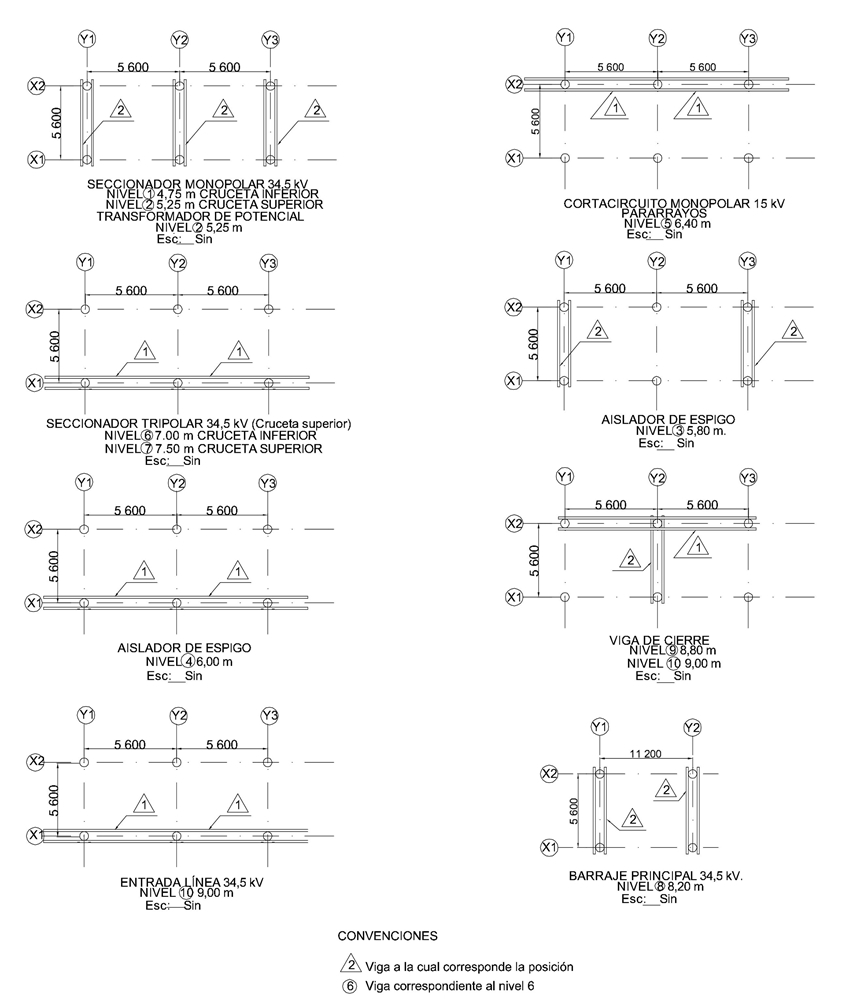 3-Los encerrados en triángulos corresponden a las vigas (ver norma CTR640 )
