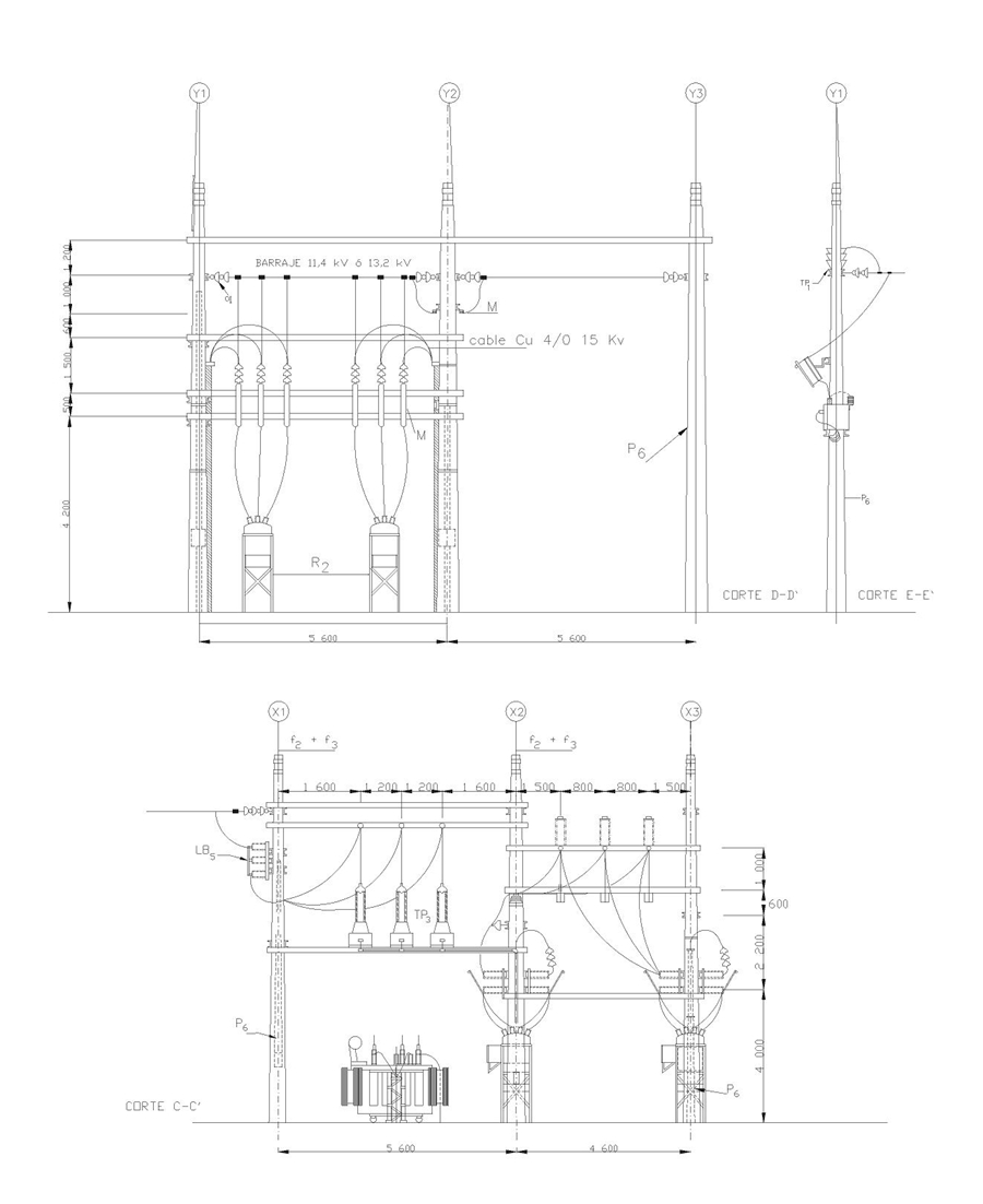 CTR623-1 Centro De Transformación Rural 34,5 KV De 2,5 A 10 MVA Con Reconectadores. Disposición De Equipos. Cortes C–C’, D–D’, E–E’