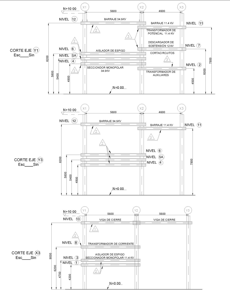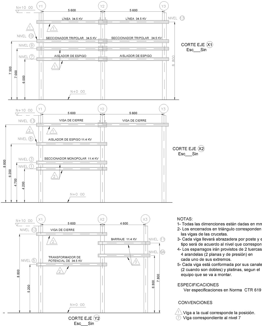 CTR628-1 Centro de transformación rural 34,5 kV de 2,5 a 10 MVA, con reconectadores. Crucetas metálicas. Cortes