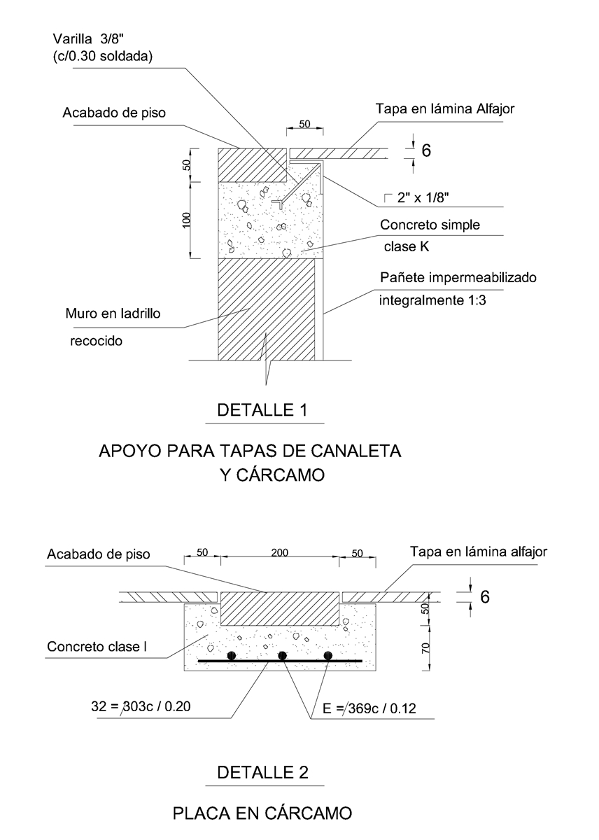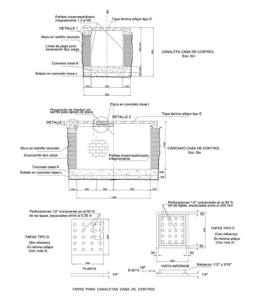 2-Las tapas de lámina Alfajor reforzadas tipo E, sólo se utilizarán en el cárcamo de la casa de control.