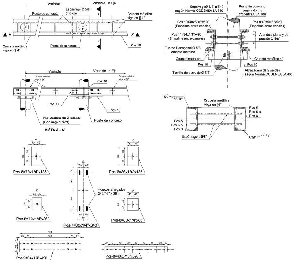 CTR641 Centro de transformación rural 34,5 kV. Detalles de vigas y crucetas metálicas