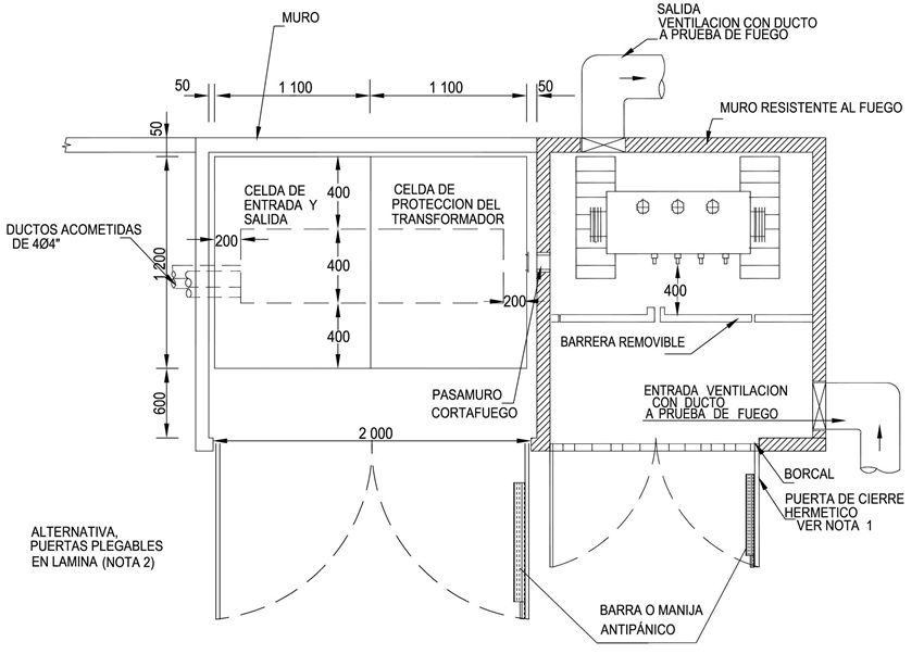 1. El local del transformador debe estar previso con puerta de cierre hermético que tenga una resistencia al fuego mínimo de tres (3) hojas.