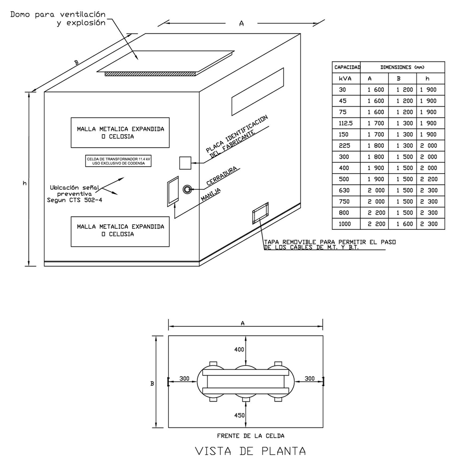 4. Las alturas (h) de las celdas son una referencia dependen de la altura del transformador.