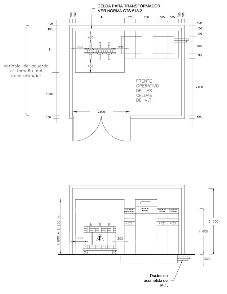 CTS519-8 Centro de transformación de M.T. Disposición con celdas en SF6, medida en M.T. y transformador seco (Nivel 2)