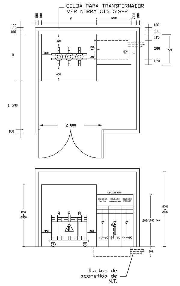 3. El local tendrá las medidas de la celda triplex en aire para intercambiar equipos.