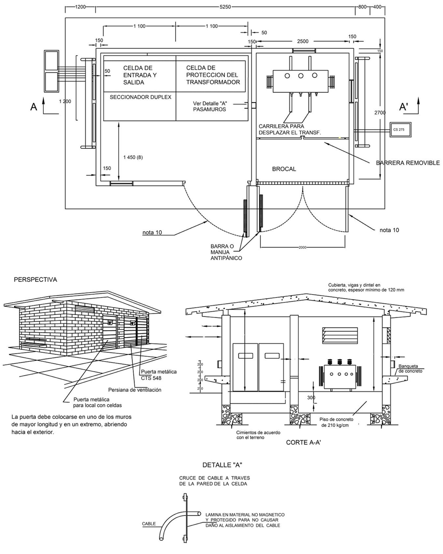 - Frente a las CELDAS DE MANIOBRA Y PROTECCION se debe dejar un espacio completamente libre para la circulación y maniobra mínimo 1450 mm.