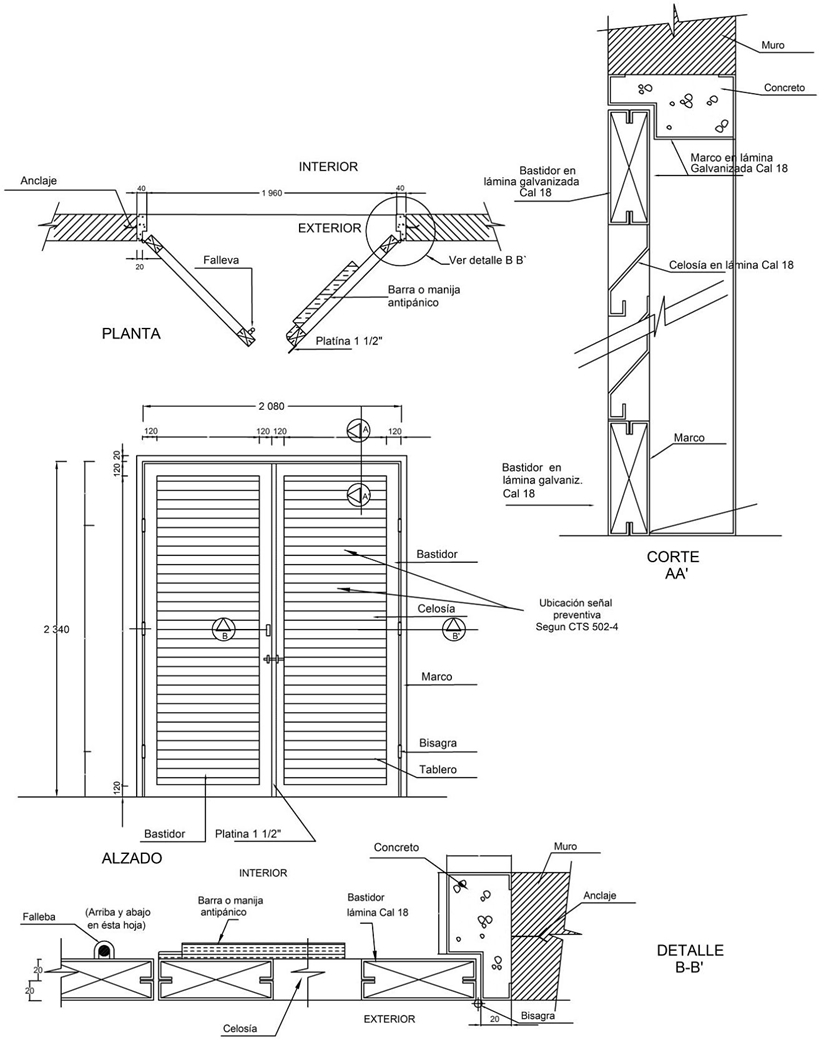 - Las hojas de la puerta no deben ser menores a 900 mm en cumplimiento con RETIE.