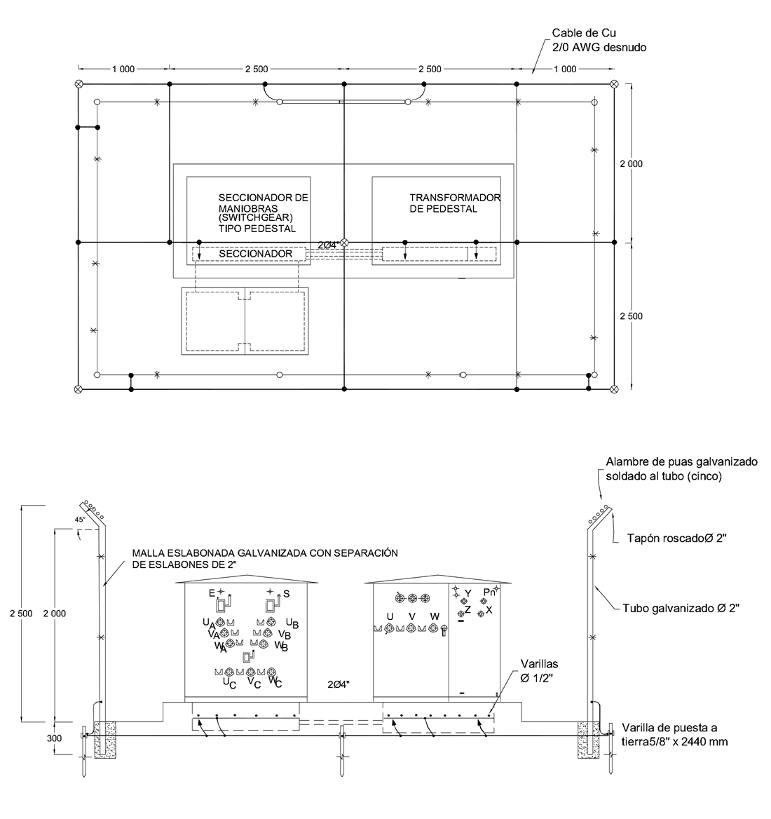 CTS523-2 Centros de transformación de pedestal. Malla para puesta a tierra