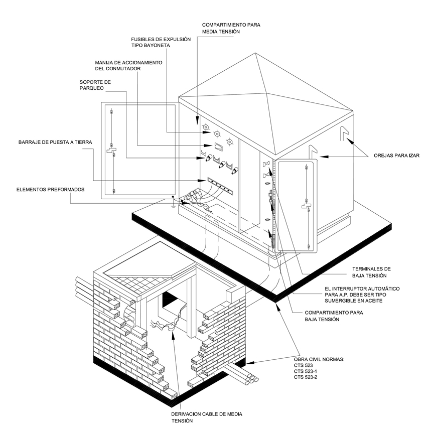 CTS525-1 Transformador de pedestal. Vista isometrica (Nivel 2)