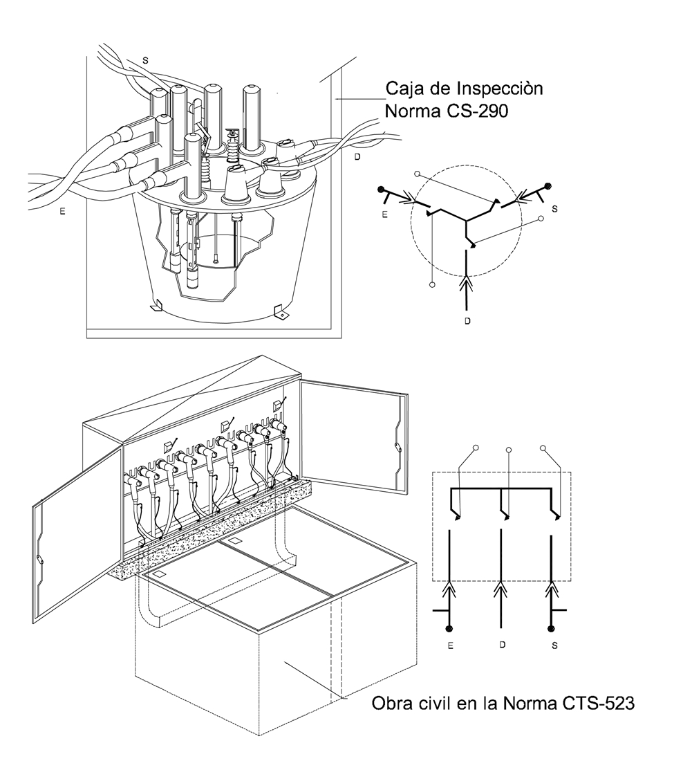 1. Para las cajas de maniobra del tipo inundable el medio de aislamiento debe ser SF6 y el medio de interrupción debe ser SF6 o vacío acorde con lo indicado en la especificación técnica ET512 Cajas de maniobra de 15kV y 34,5kV.