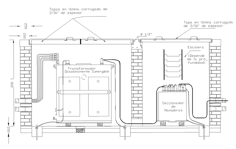 - El tamaño de la caja de inspección del transformador será acorde al tamaño del transformador, la cota indicada es una referencia.