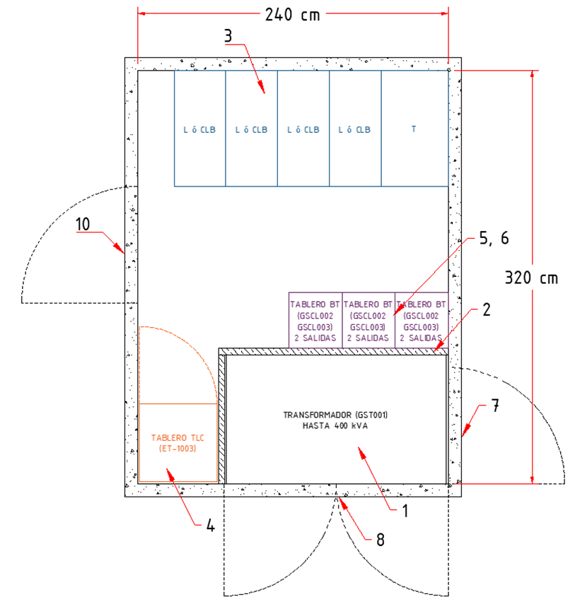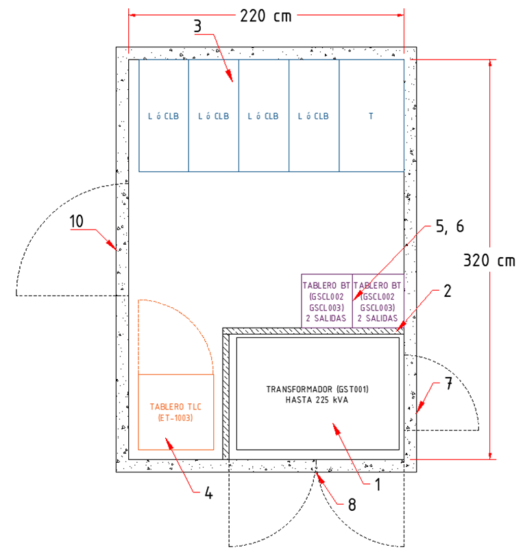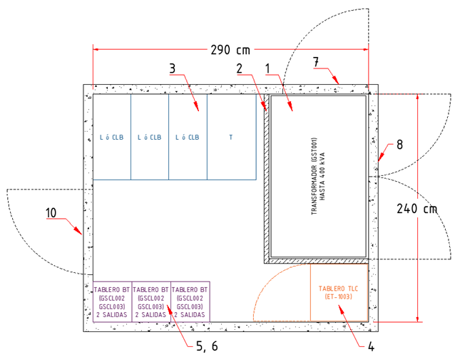 7 | NA | Puertas de acceso para operación y mantenimiento transformador |