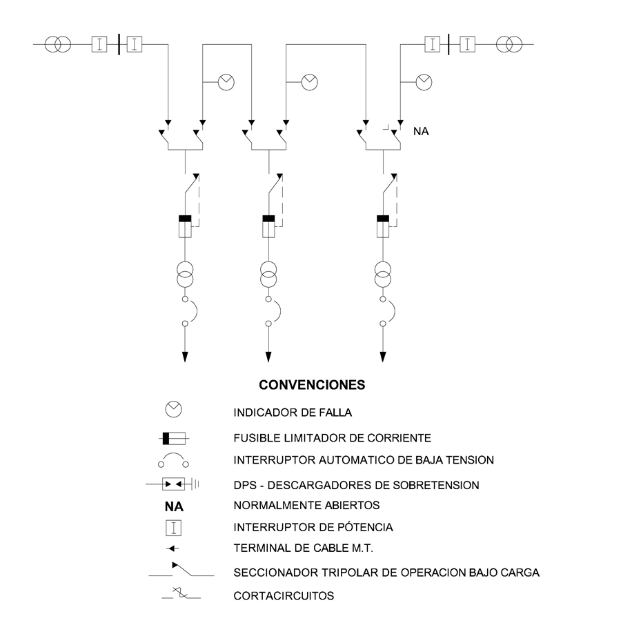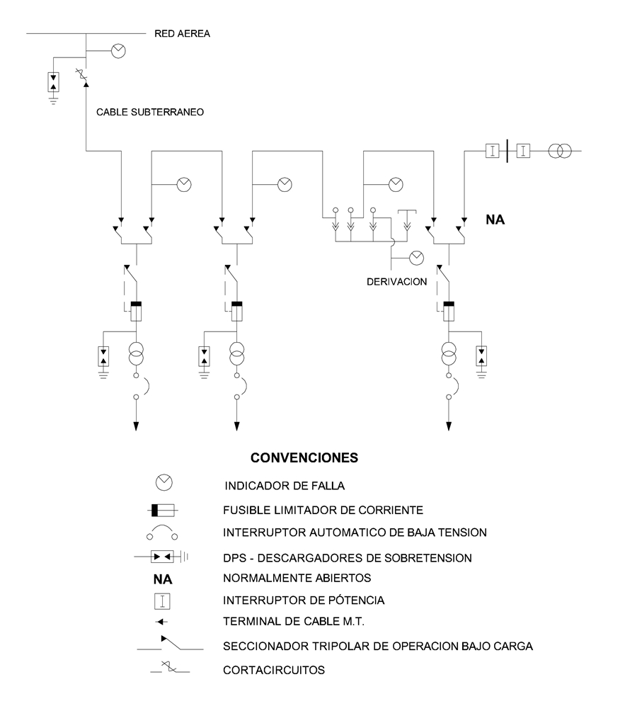 CTS510-3 Ubicación de indicadores de falla en la red subterránea