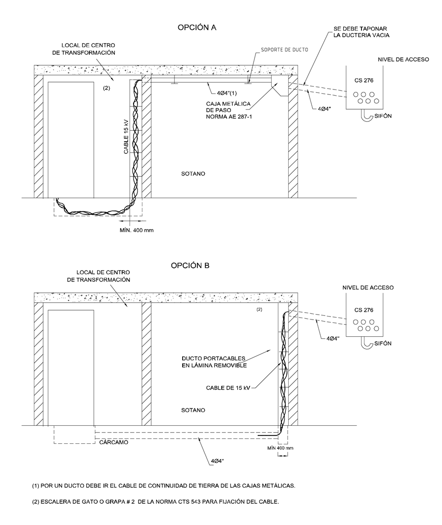 CTS501 Opciones para acometida de M.T. a centro de transformación en sótano