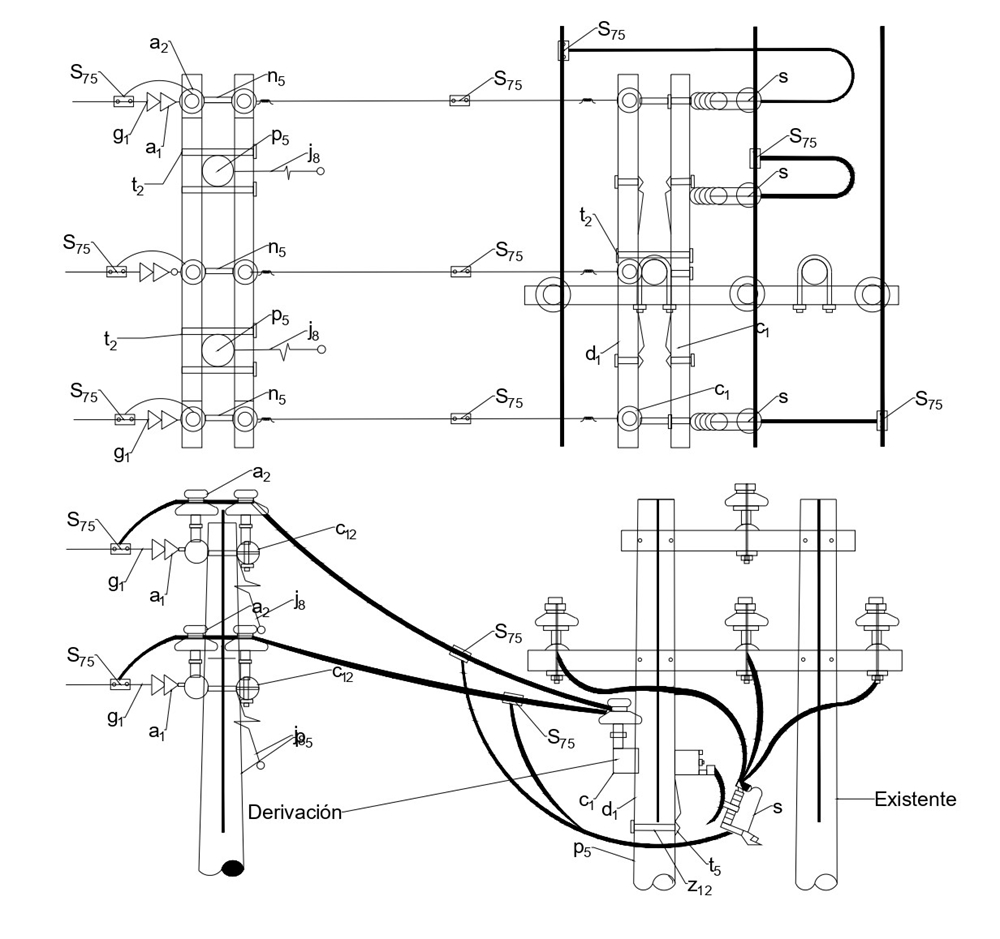 LAR279 Línea rural 13, 2 –11,4 kV derivación trifásica triangular de H a H