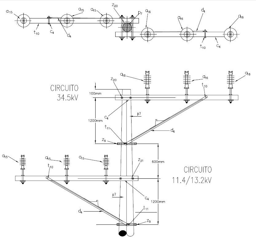 LAR150 Circuito 34,5 kV en bandera con circuito en bandera 11.4/13.2 kV