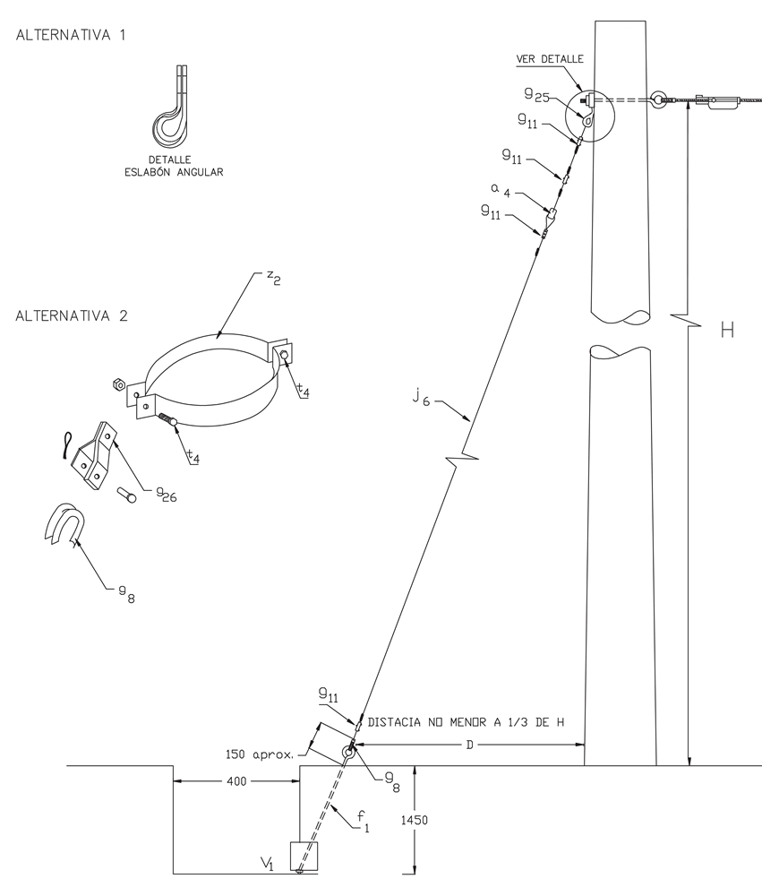LAR419 Retenida terminal o en ángulo poste a varilla de anclaje (alternativas)