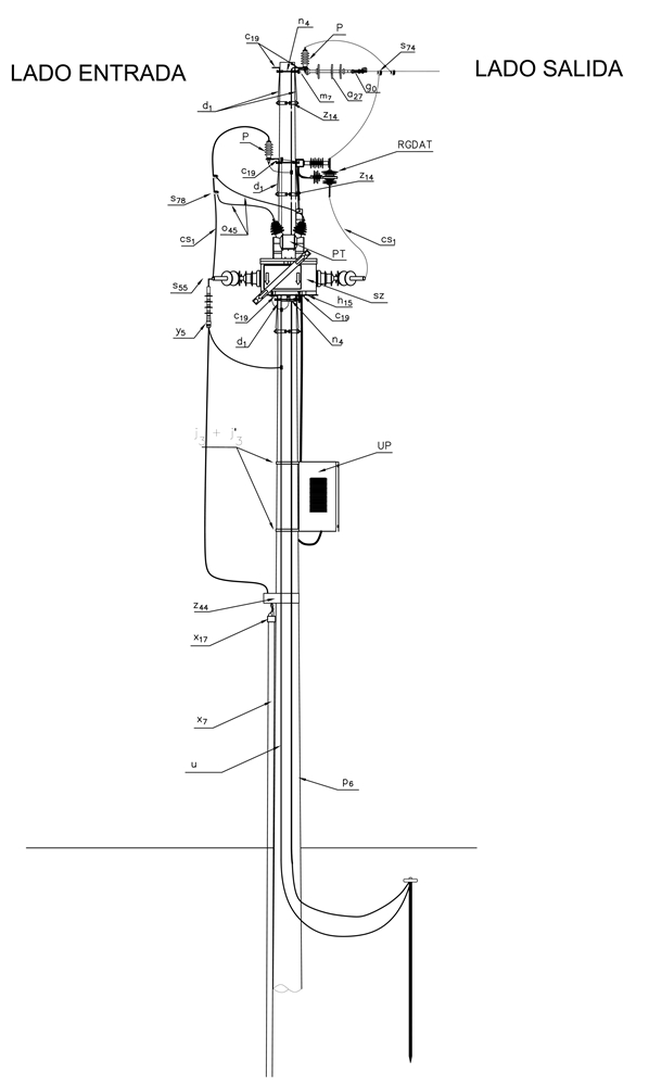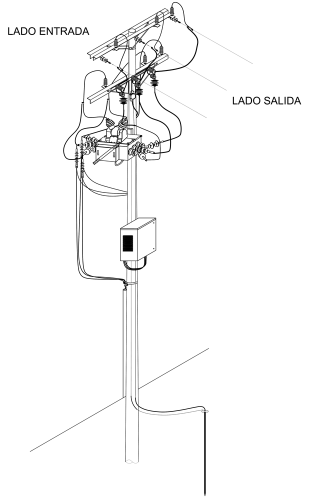 LA515-1 Red 11,4 kV o 13,2 kV montaje de seccionalizador (SZ) central. Afloramiento al lado fuente