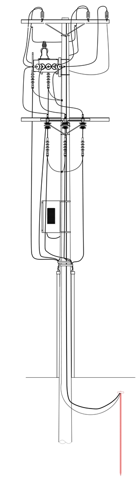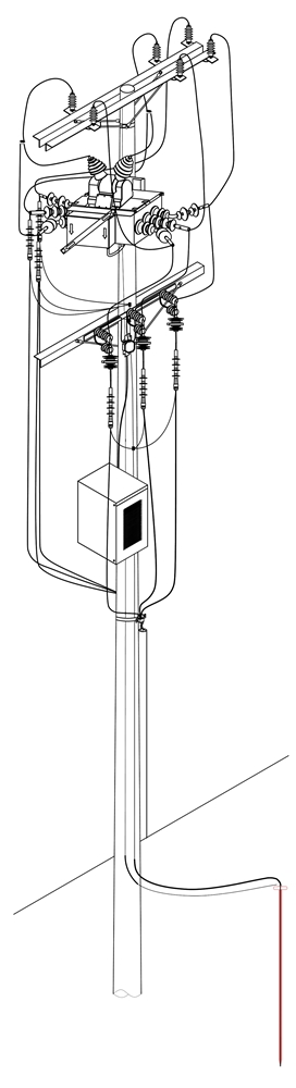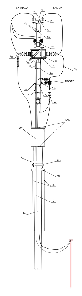 LA515-3 Red 11,4 kV o 13,2 kV Montaje de seccionalizador (SZ) central. Afloramientos fuente y carga