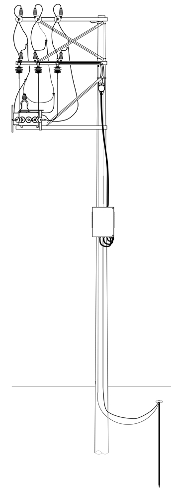 LA515-B Red 11,4 kV o 13,2 kV Montaje de seccionalizador (SZ) bandera. Con SPT en doble fleje