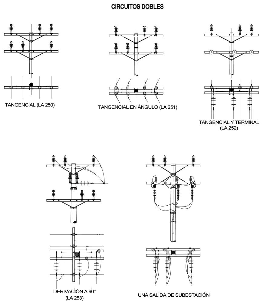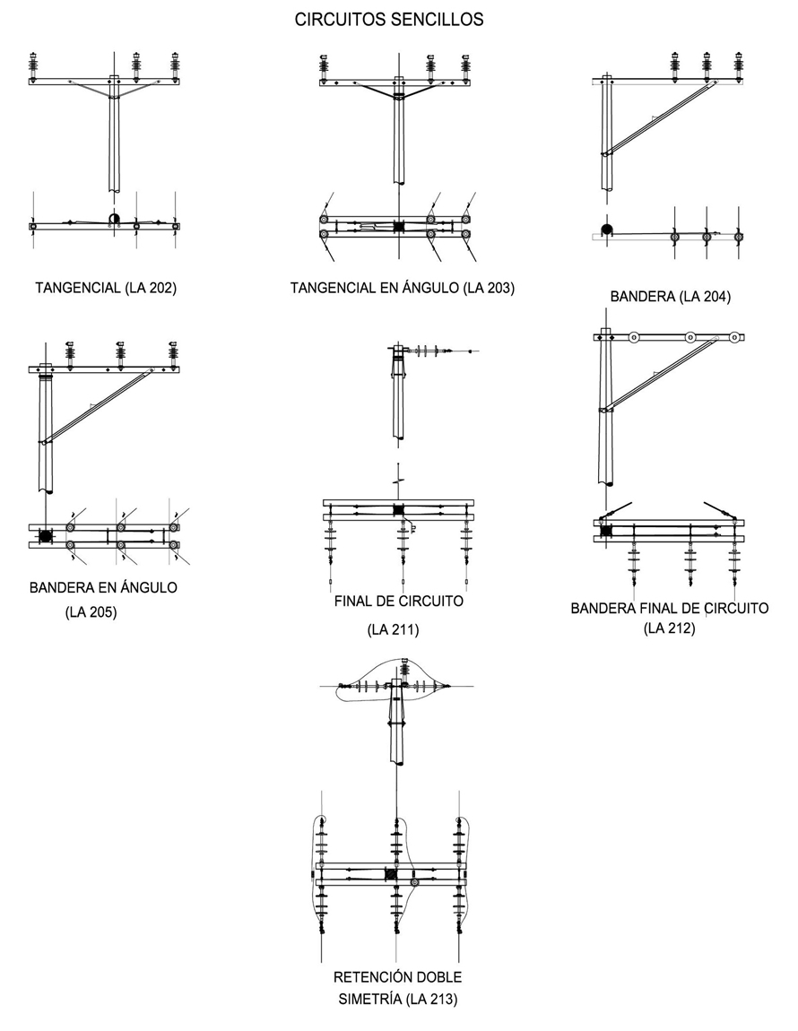 LA201 Estructuras básicas de 11,4 kV y 13,2 kV circuitos trifásicos