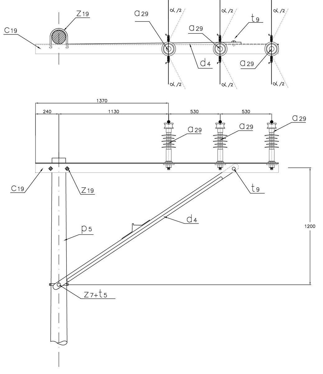 LA204 Circuito primario sencillo construcción tipo bandera con cruceta de 2,5 m