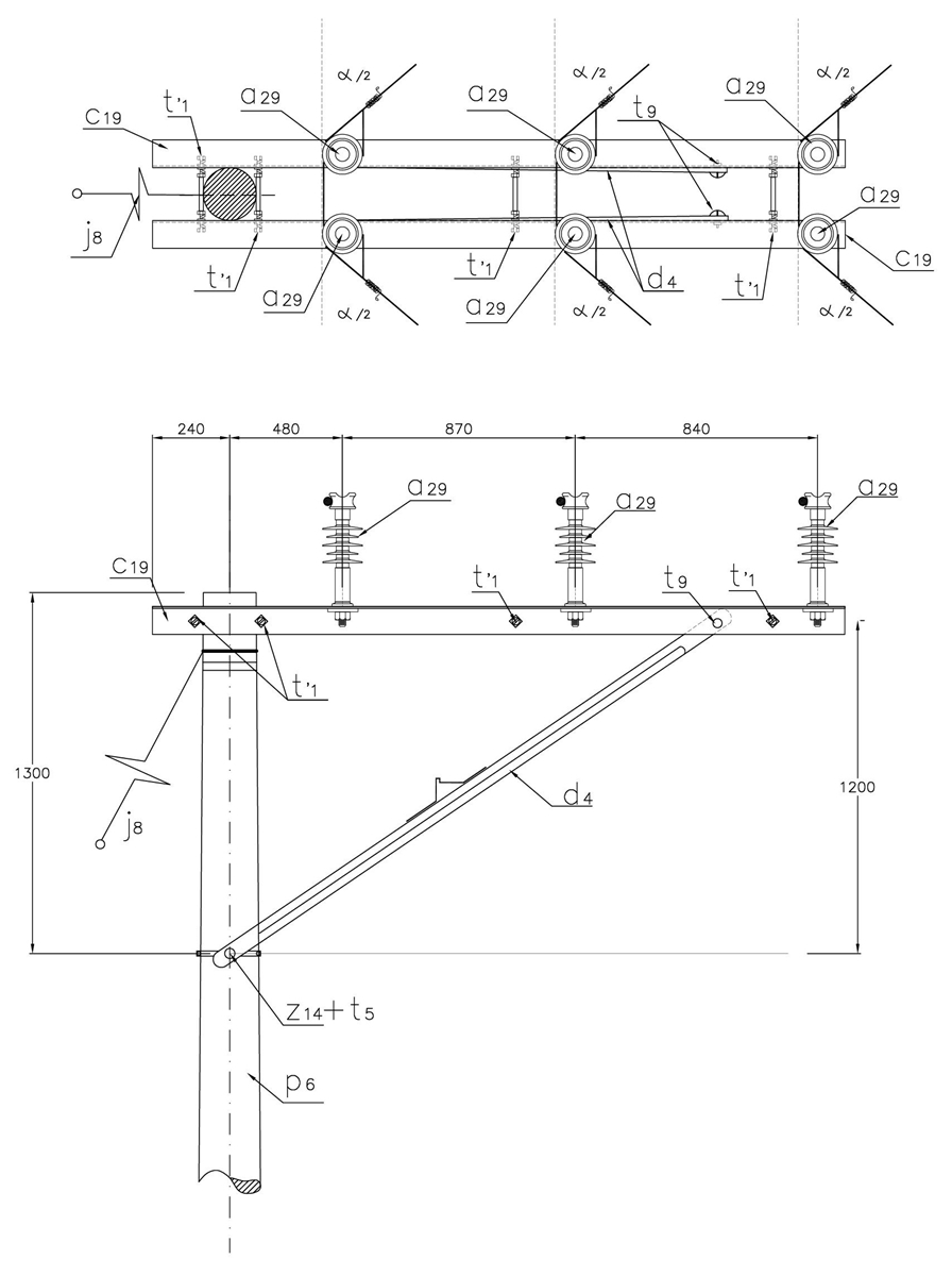 - Este montaje se utiliza para separar el circuito primario de techos, voladizos, balcones, ventanas y cualquier otro tipo de acercamiento que cumpla con la norma LA 007 de distancias mínimas de seguridad . Se requiere por lo menos una separación de 117 centímetros del centro del poste a los lugares ya mencionados.