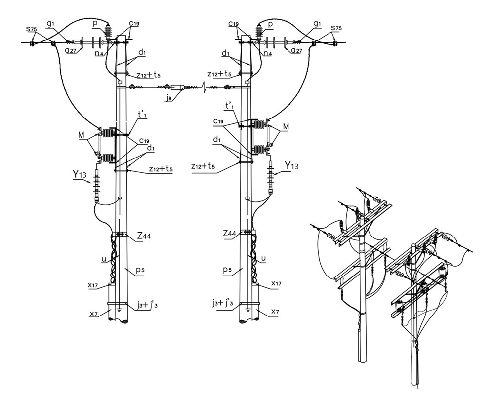 - La distancia “d” entre los postes depende de la distancia entre cajas de inspección a la salida de la subestación.