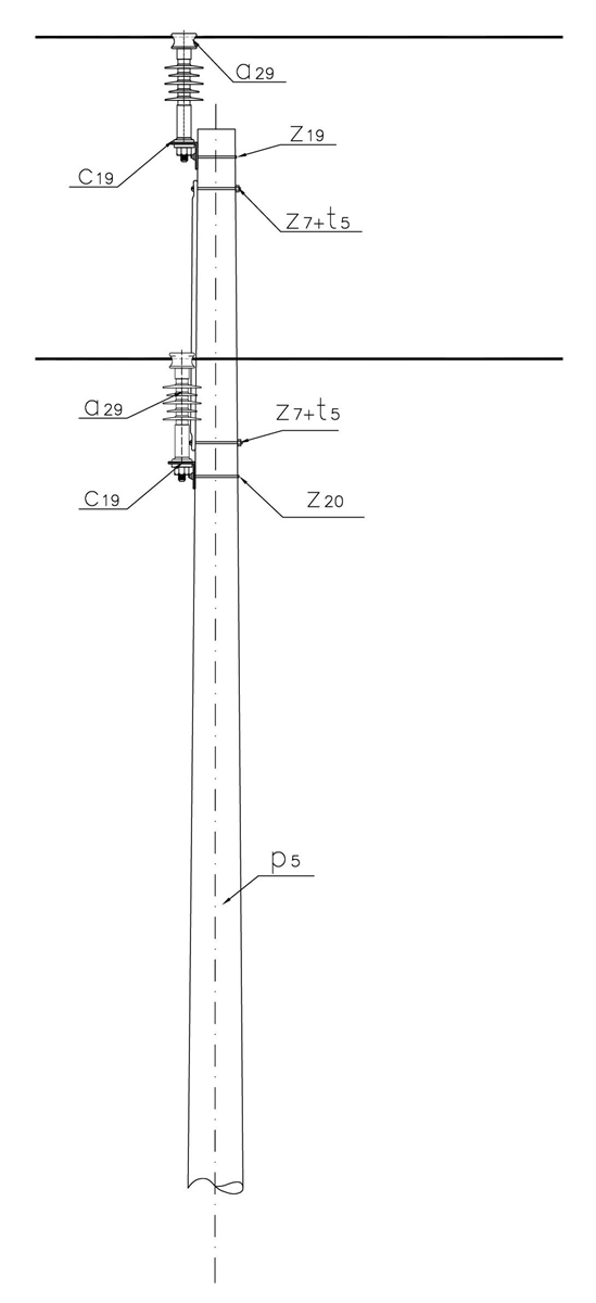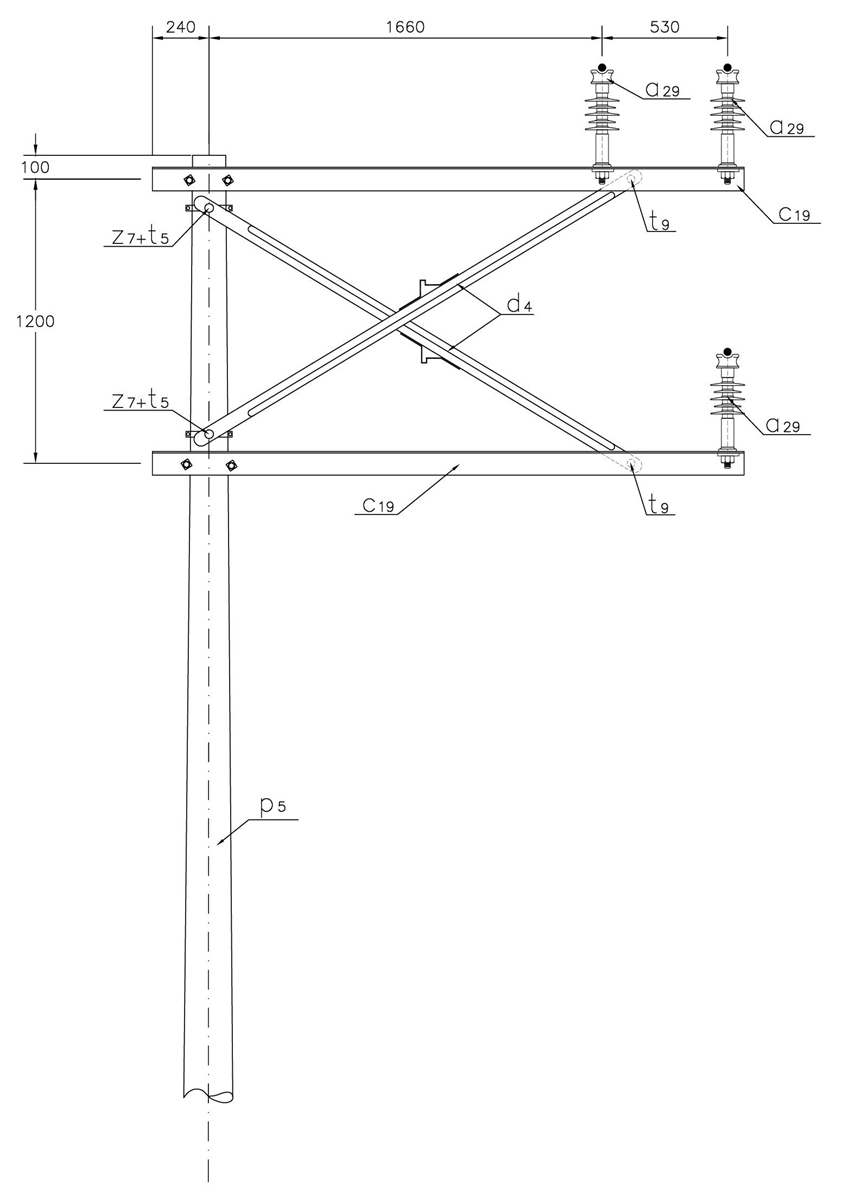 LA231 Circuito primario sencillo construcción en bandera con doble cruceta 2,5 m