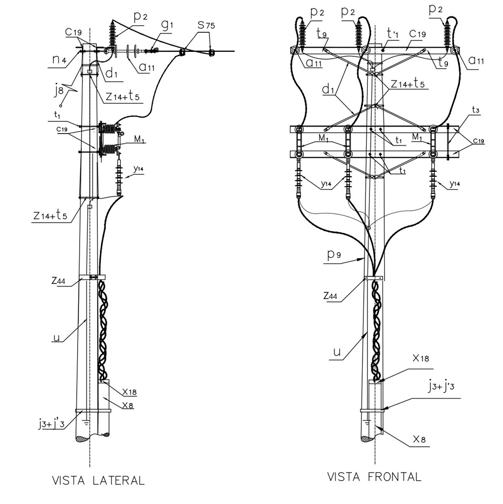 | M 1 | 3 | E-MT-006 | Seccionador monopolar 600 A, 36 kV tipo cuchilla | |