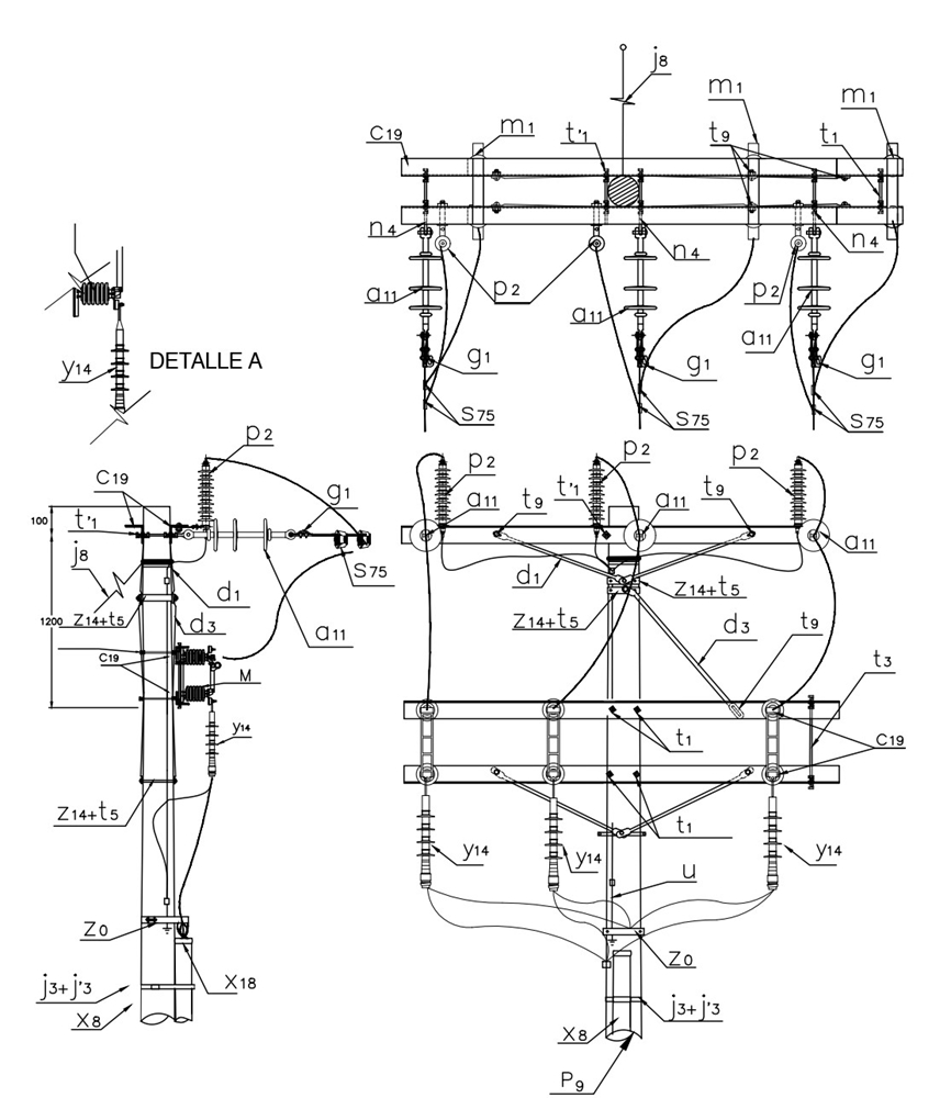 - Los descargadores de sobretensiones para líneas de 11.4kV y 13.2 kV serán de óxido metálico 12 kV, 10 kA.
