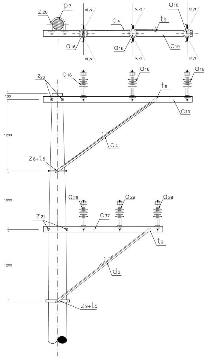 - El ángulo de deflexión (Alpha) según el poste corresponde a: