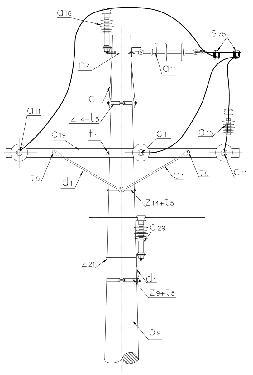 LA165 Circuito urbano 34,5 kV cambio de ángulo a 90º con retención horizontal y circuito tangencial sencillo de 11,4 kV